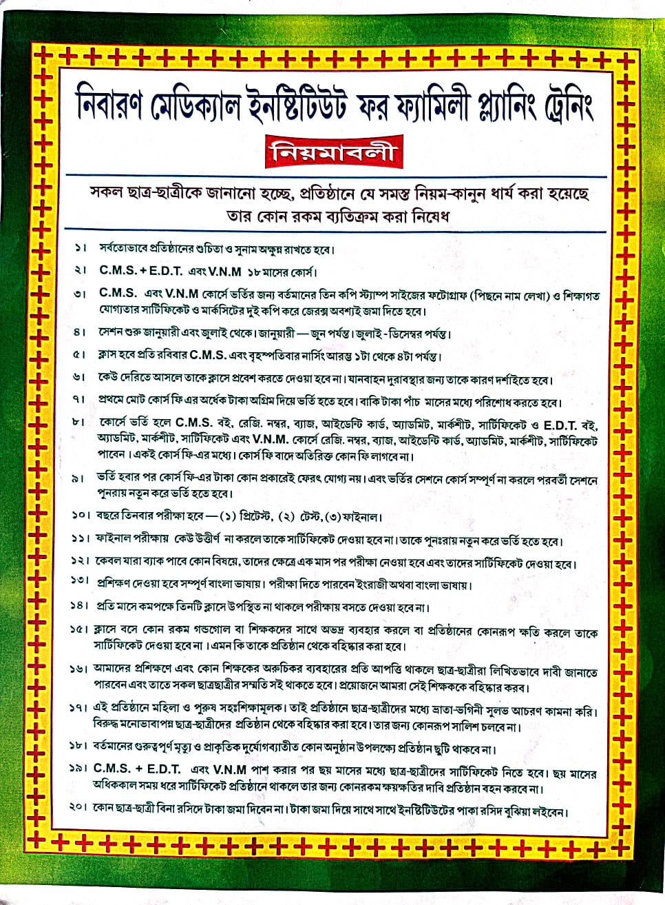 Community Medical Service - (One year) & Essential Drug Training -(Six month)